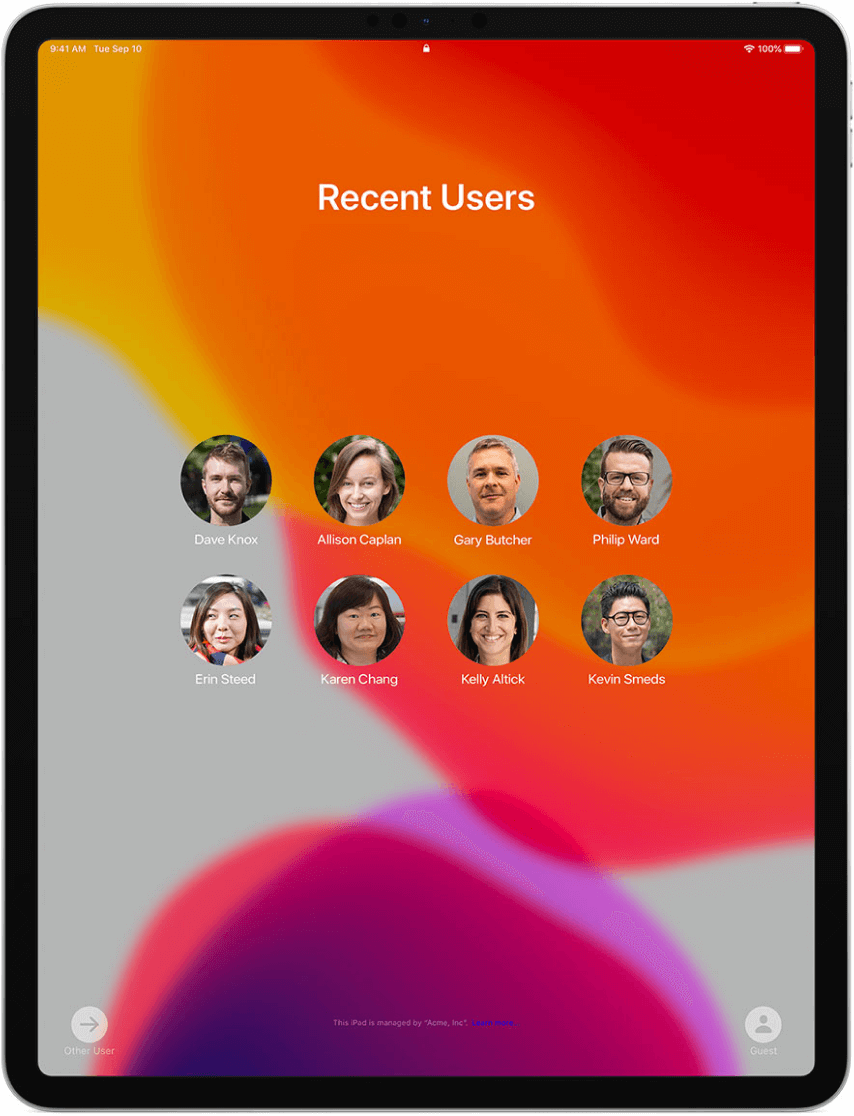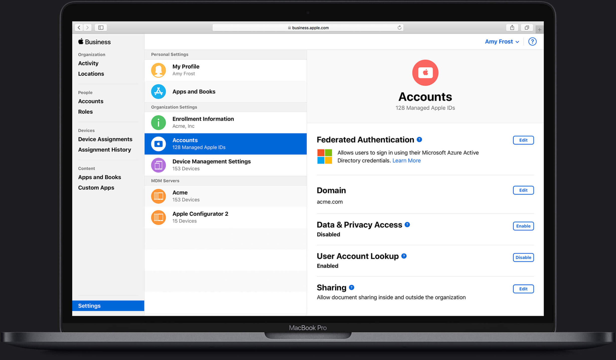 Ērti konfigurējiet un pārvaldiet ierīces un lietotnes; izveidojiet Apple ID katram darbiniekam.