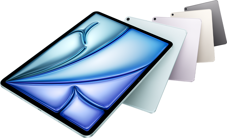 Jauna dizaina iPad Air. Tagad divos izmēros. Satriecošs Liquid Retina displejs. Ar Apple M2 čipa superjaudu. Akumulators visai dienai. Refer to legal disclaimers Horizontāla novietojuma priekšējā kamera. Pieejams četrās izskatīgās krāsās.