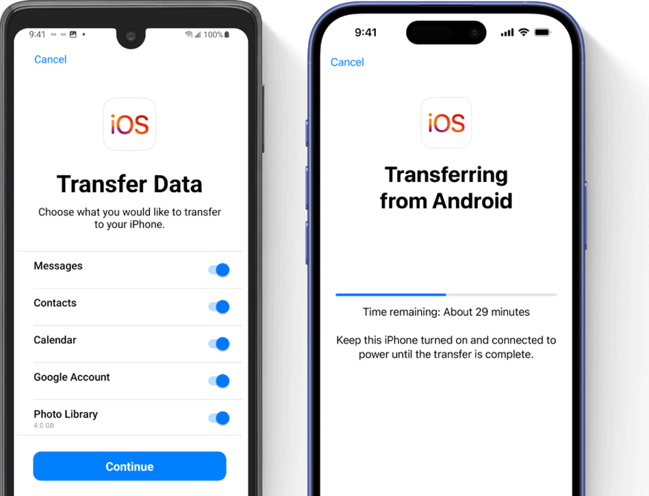 Pārejot no “Android” uz “iPhone”Tiks pārnestsKas tiek pārnests